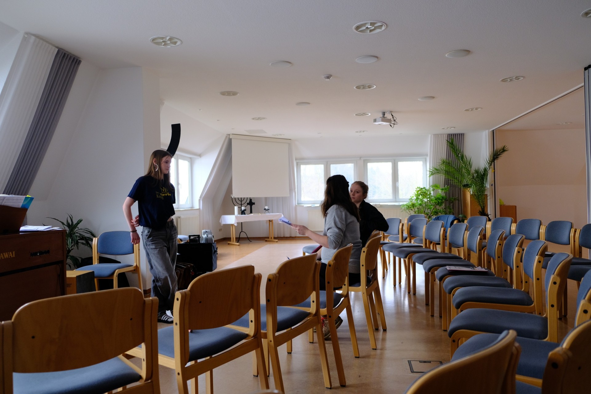 ...laufen schon die Vorbereitungen für die Morgenandacht.